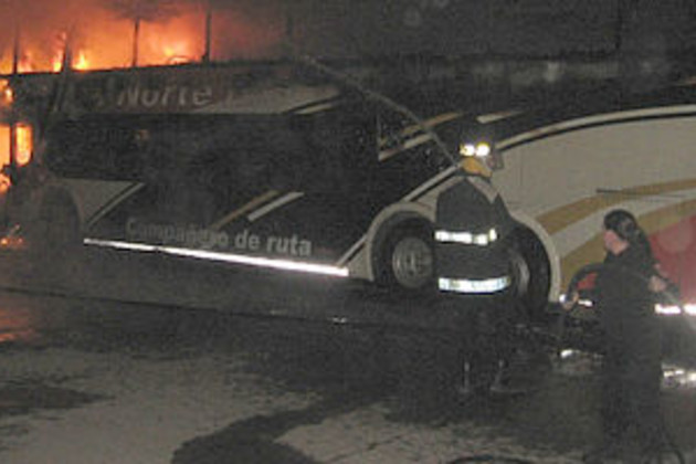 Se trata del interno 500, dominio DQM 007, de la empresa de transporte El Norte Bis. La unidad comenzó a arder a las 22.30 cuando estaba estacionado en las inmediaciones de Corrientes y Rivadavia, justo frente a una proveedora de combustibles.