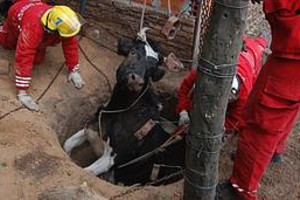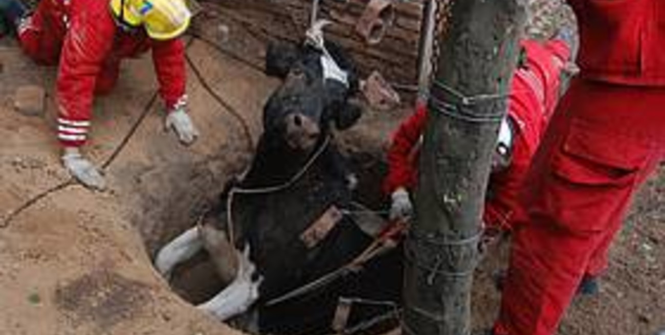 Los Bomberos Voluntarios de El Trébol (localidad del departamento San Martín) tuvieron un insólito y único trabajo en la mañana de este lunes: rescatar una vaca que cayó en un pozo ciego en construcción, en calle San Martín al 1800, de Pueblo Paso.