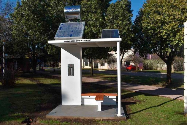 “El proyecto de estaciones solares consiste en generar un sitio de recreación al aire libre que ofrezca agua caliente para tomar mate y servicios energéticos para la recarga de celulares y computadoras para el público en general. Estos servicios son alimentados a partir de colectores solares, en el caso del agua caliente, y de paneles fotovoltaicos, en el caso de los servicios eléctricos”, explicó Colombo.