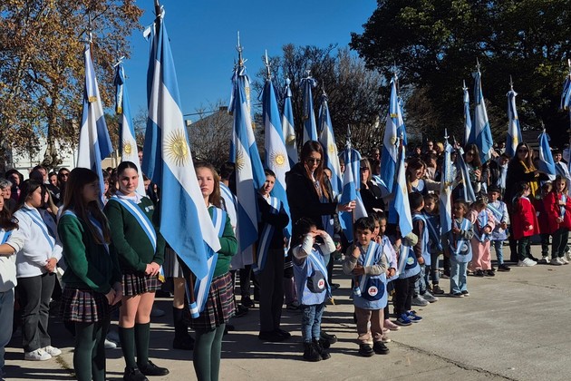 Los alumnos de 4° grado de los distintos establecimientos educativos prestaron su juramento de lealtad a la Bandera. Durante el acto, el profesor Gustavo Urueña ofreció unas palabras alusivas, en las que ponderó la figura de Belgrano como ejemplo de compromiso y vocación pública.