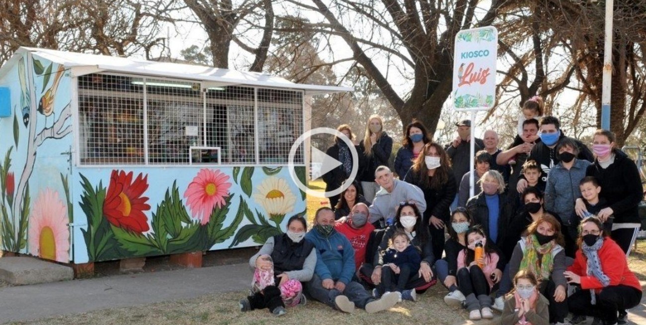 En paralelo, se armó un grupo de Whatsapp, se sumaron las “Manos Solidarias”, comercios y la artista local, Alejandra Cabrera, quienes diagramaron el nuevo kiosco para Luis. De paso, invitaron a chicos a que se sumen a participar, para que sean ellos el día de mañana quienes recuerden la experiencia y no se la olviden nunca.
