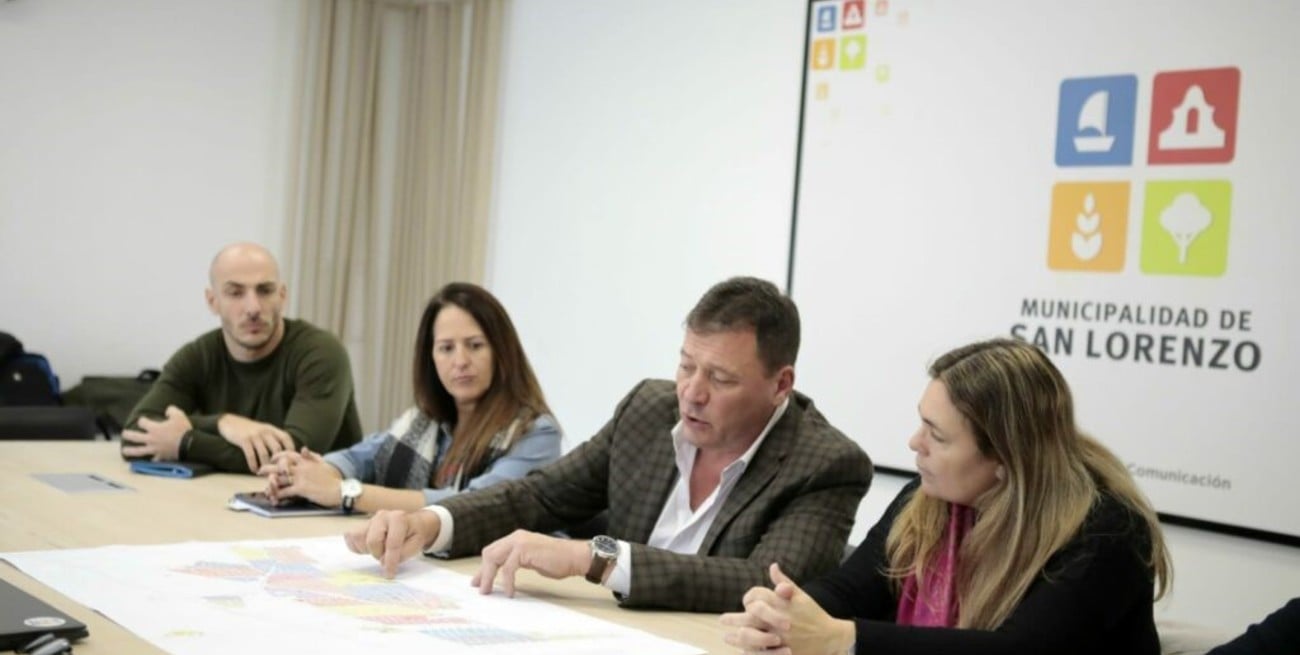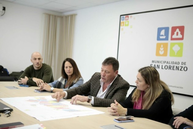 Este lunes en la Sala de Prensa municipal, el intendente Leonardo Raimundo mantuvo un encuentro con Esteban Santantino y Florencia Blotta, referentes de seguridad del candidato a gobernador Maximiliano Pullaro, junto a quienes comenzó a diagramar el Plan de Seguridad Integral para San Lorenzo.