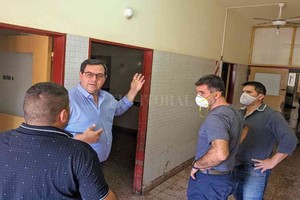 El intendente Amadeo Enrique Vallejos inspeccionó in situ las obras de refuncionalización que se hacen en algunos sectores de la sede del viejo hospital.