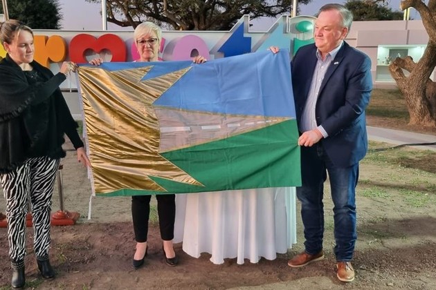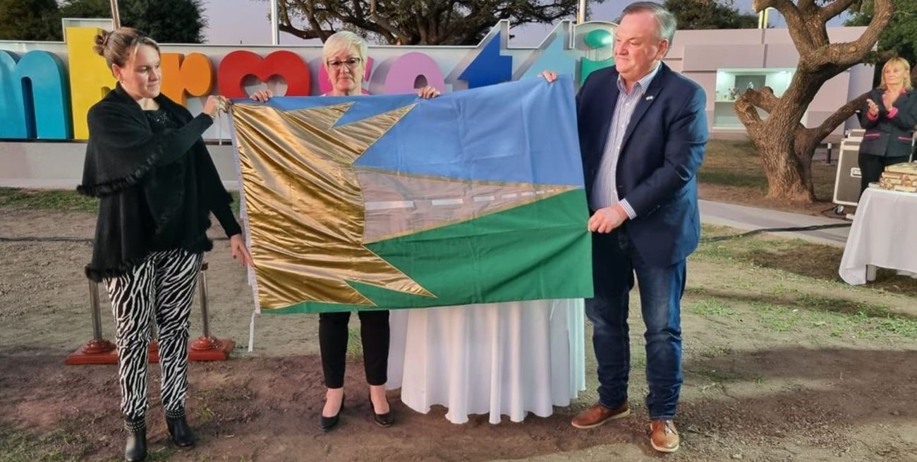 Presentaron la bandera de Ambrosetti e inauguraron el “mega letrero” en el acceso al pueblo