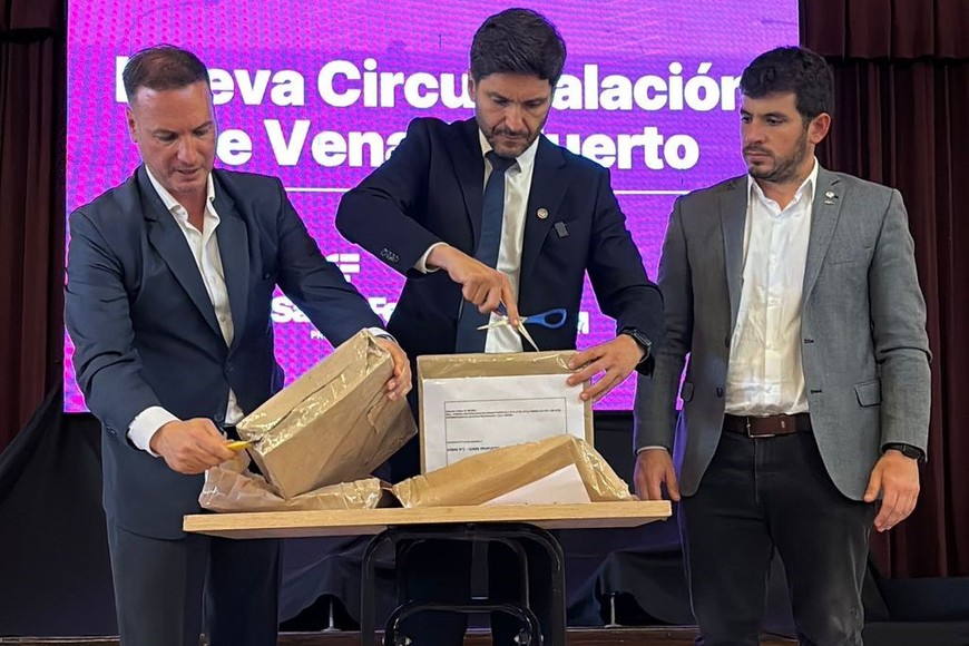 El gobernador Pullaro, el ministro Enrico y el intendente Chiarella, protagonizaron el acto de apertura de sobres de la licitación para construir la avenida de Circunvalación, donde se presentó una decena de ofertas. El presupuesto oficial orilla los $30 mil millones y el plazo de ejecución es de 15 meses.