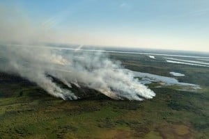 Se ve desde la costa rosarina. Según explicaron desde el grupo ambientalista, nadie ha ido a combatirlo porque está lejos de las ciudades costeras o las rutas. Mientras tanto, la biodiversidad del humedal sigue siendo castigada.