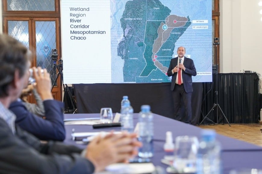 Posteriormente, se refirió a la propuesta "para esta área de manejo integral del Jaukaanigás. Este no es un sitio aislado, sino que es parte de una gran región de humedales de nuestro país, es el corredor fluvial chaco-mesopotámico. Puntualmente el área que proponemos, tiene que ver con este sitio Ramsar, que cuenta con más de 464.000 hectáreas, a lo largo del cual hay más de 11 localidades que están involucradas en esto. El área de valor que queremos abordar es de 150.000 hectáreas", explicó la ministra Gonnet.