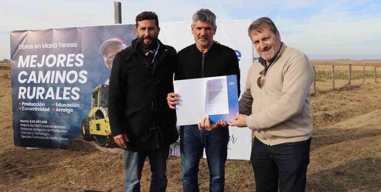 Posteriormente, la comitiva provincial celebró un convenio en la localidad de María Teresa para la concreción de una traza de 10.368 metros, que demandará una inversión superior a los 48 millones de pesos y beneficiará a un productor ganadero, siete agricultores y a un tambo.