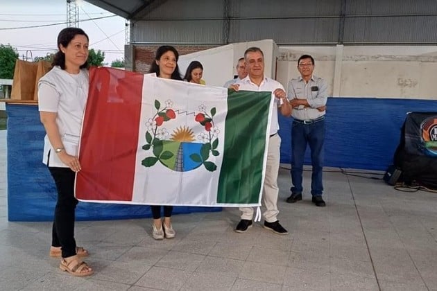 Posteriormente las autoridades locales hicieron entrega de un diploma y una bandera en lienzo a las escuelas primarias Francisco Candioti, Mariano Moreno y 3 de Febrero y a las instituciones secundarias Juana Azurduy y Héroes del 2 de Abril, lo mismo que a la policía para colocar en la sede de la comisaría.