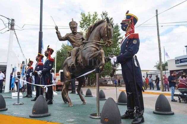 Es una estatua a tamaño real del castrense montado a caballo ubicada en la esquina conocida como Parada del 20, que une la avenida San Lorenzo con las calles Pellegrini y Eva Perón. El monumento fue realizado en símil bronce por el estudio artístico de Fernando Pugliese.