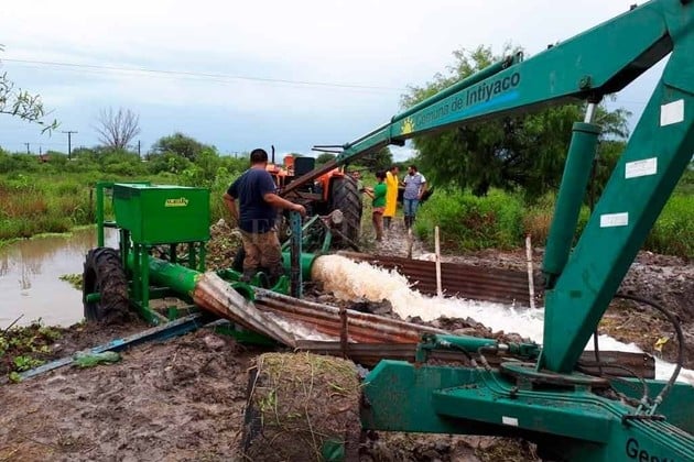 En Los Amores son 13 los equipos que bombean agua desde el casco urbano. Otras similares fueron ubicadas en Intiyaco. Esperan la llegada de un unimog del Ejército para asistir a la zona.