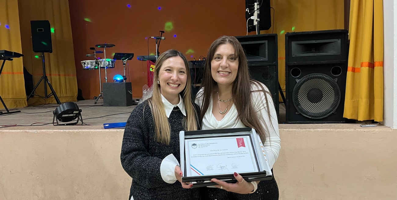 Durante el momento protocolar, Chivallero hizo entrega a la Directora de la Escuela la Declaración de Interés Provincial por parte de la Cámara de Senadores de la Provincia de Santa Fe, reconociendo de esta manera, la trayectoria educativa del establecimiento y su importancia para el desarrollo local y de la región.