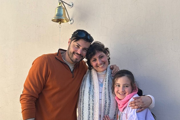 Yamila bajo la campana inspiradora, acompañada de su pareja y su hija, pilares fundamentales al enfrentar la enfermedad.