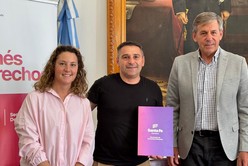 El intendente de Esperanza, Rodrigo Müller, junto con la diputada provincial, Jimena Senn, y el secretario de Derechos Humanos de Santa Fe, Emilio Jatón, encabezaron este martes la firma de convenios para la adhesión de localidades del departamento Las Colonias al programa provincial “Tenés Derechos”.