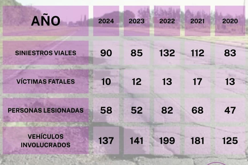 Lamentablemente, estas cifras siguen en aumento y si se le suma lo ocurrido en los primeros cincos meses del año 2025, la cantidad de siniestros asciende a 534, las víctimas a 69, las personas lesionadas a 311 y la cantidad de vehículos involucrados 823.