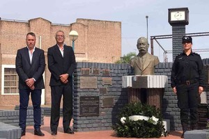 De este modo, el presidente comunal Sergio Busquet, acompañado por el tesorero Livio Rafaelli; y la titular de la sub Comisaría Tercera, Elena Rodriguez, procedieron pasadas las 12:30 a izar las banderas frente al edificio de gobierno y así dar comienzo a la ceremonia.