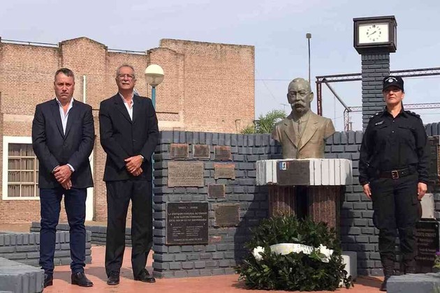 Luego, se dirigieron a la Plazoleta que lleva el nombre del fundador, don Alberto Chovet, donde posterior a la ofrenda floral en el busto que lo recuerda, entonaron el Himno Nacional Argentino y la Marcha a Chovet. Además, se escucharon las palabras del presbítero Diego Buffón. Vale aclarar que todo lo acontecido, fue retransmitido por las dos radios FM locales y por los altoparlantes de la iglesia.