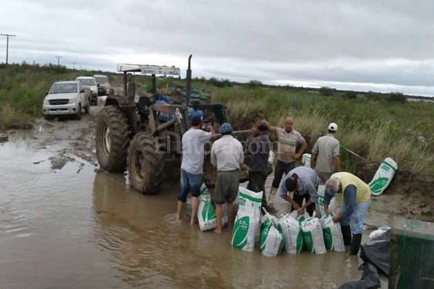 La buena voluntad y esfuerzo de los pobladores, con la ayuda de herramientas, lograron cortar el paso de agua en algunos sectores, sobre la ruta Provincial "56", colocando gran cantidad de bolsas con tierra para reconstruir nuevamente una defensa.