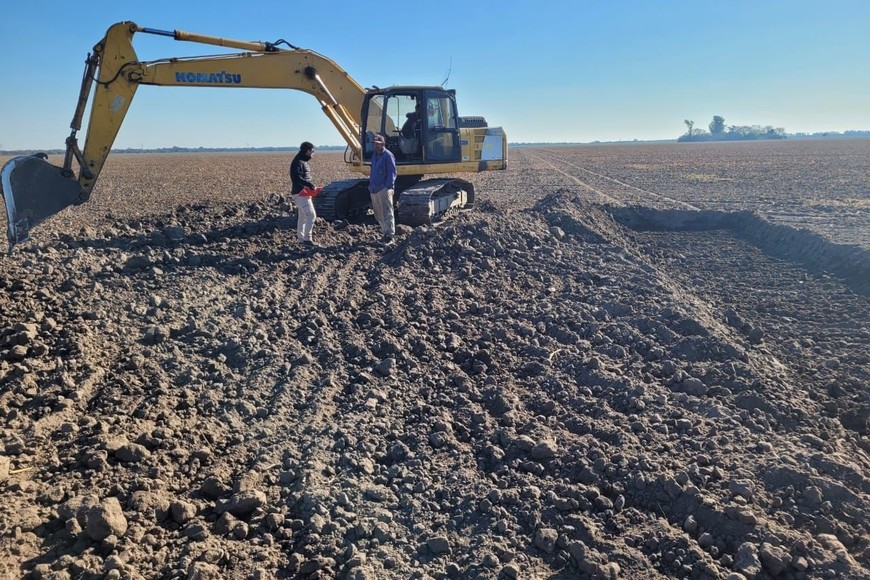 Se constató la presencia de un equipo excavador realizando una canalización de unos 1200 metros de largo, sin autorización de la Secretaría de Recursos Hídricos del Ministerio de Obras Públicas.