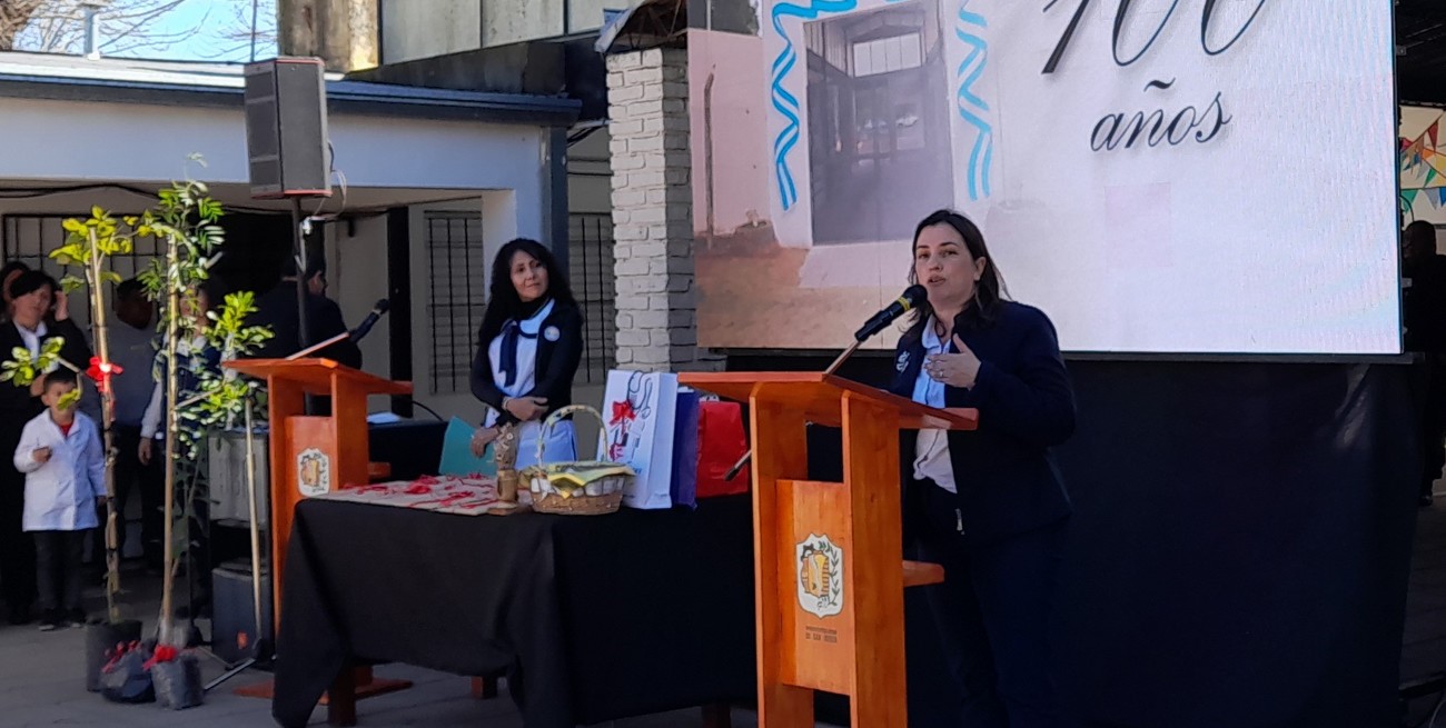 María del Carmen Seco, directora del establecimiento, también dirigió unas palabras a los presentes. Seco reflexionó sobre el significado de celebrar 100 años de historia educativa, mencionando el legado de quienes contribuyeron a la fundación y desarrollo de la escuela. Destacó la importancia de la educación en la vida de los niños y la labor de todos los involucrados en el funcionamiento de la institución. La directora resaltó la labor de los docentes y el personal de apoyo, así como el compromiso de las familias y la comunidad, que han sido fundamentales para el éxito de la escuela.