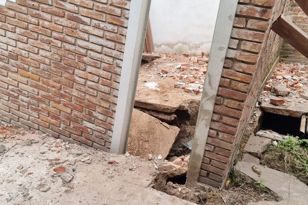 A un paso de cumplir 100 años la Escuela Nº 362 ve peligrar parte de su edificio por un socavón de más de dos metros de profundidad, que ya generó la clausura de un aula y el cerramiento de esa zona.