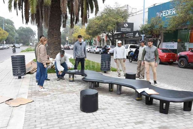 El nuevo equipamiento consiste en bancos y cestos, entre otros elementos utilitarios, de seguridad y ornamentales. Las luminarias se colocarán la semana próxima.