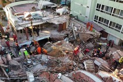 La imagen tomada desde un drone en el derrumbe.