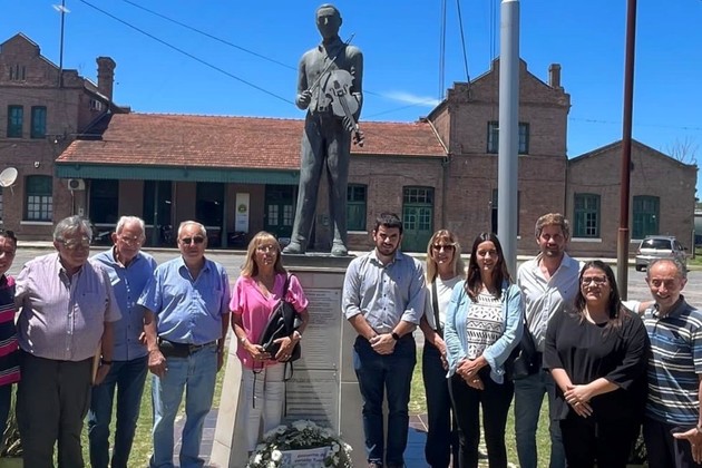 En el marco del homenaje, las autoridades municipales y miembros de la Comisión depositaron una ofrenda floral frente al monumento que lo recuerda en la explanada ferroviaria de Sarmiento y Juan B. Justo.