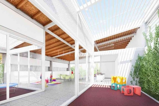 El prototipo tipológico propuesto cuenta con: planteo arquitectónico desarrollado en un solo nivel con una circulación principal que estructura las distintas actividades; área de administración con baño privado; cocina y depósito con ingreso propio para proveedores y personal; una sala maternal (de 45 días a 1 año) y lactario; una sala de deambuladores (1 año a 2 años); una sala de 2 años a 3 años adaptable para funcionar como comedor; una sala de 3 años a 4 años adaptable para funcionar como comedor; un bloque sanitario para infantes, además de un sanitario específico para personas con movilidad reducida; y patios internos que adecúan las condiciones ambientales requeridas, que contarán con espacios lúdicos y juegos infantiles.