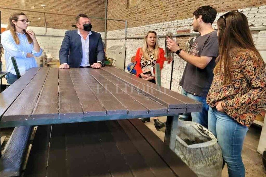 El intendente Leonardo Raimundo visitó la empresa rosarina Evercaff, que convertirá las tapitas recolectadas en el Parador Turístico y en el Pulmón Verde en tablas para la construcción de bancos que se instalarán en plazas de la ciudad. Acompañaron al mandatario local la secretaria de Coordinación General, Andrea Soria, y coordinadora de Gabinete, Gimena Bulla.