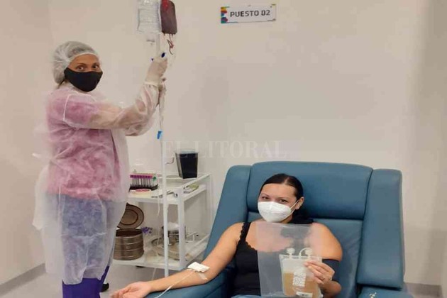 La profesional detalló que "estamos utilizando este procedimiento para la extracción de plasma, mediante la técnica llamada aféresis semiatomático, para el cual utilizamos descartables hechos para tal fin, y no la máquina de aféresis convencional. Parte del procedimiento se realiza manualmente y la otra con la centrífuga refrigerada de bolsa. Se obtiene solamente el plasma y los glóbulos rojos del donante se los volvemos a reinfundir. Todo a través de una misma vía, por lo cual el donante voluntario recibe una sola punción", destacó.