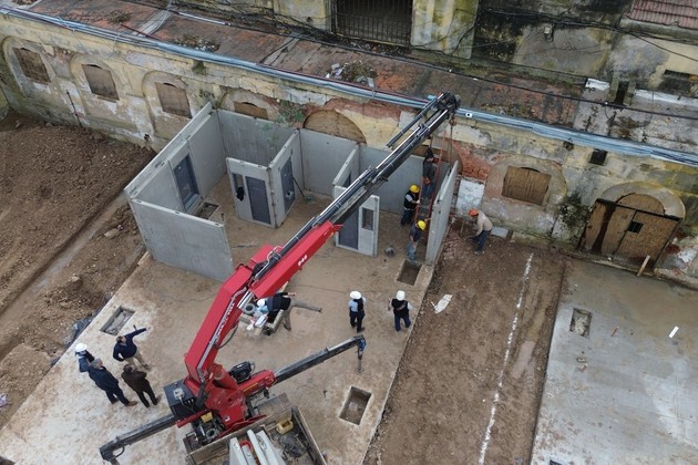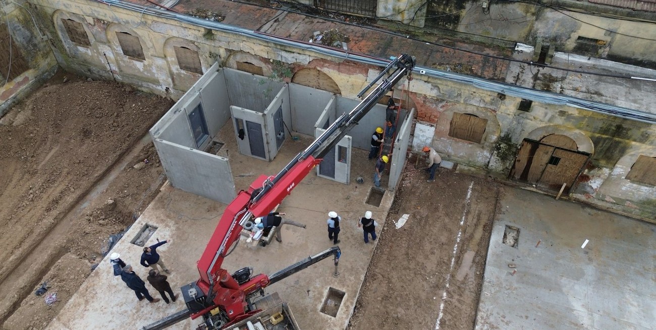 En primera instancia, se realiza el montaje de las celdas en las losas A y B, mientras se siguen ejecutando tareas pluviales y cloacales”.