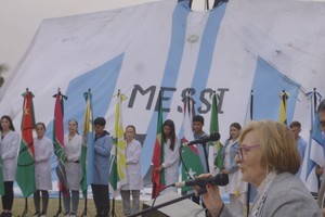 Acompañó la ceremonia, María Carmen Rama, madre de Yamila Ghiano, la “pequeña Belgrano”, ganadora del concurso que generó la bandera de Provindencia quien leyó palabras de su hija.