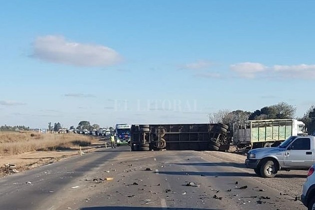 Allí, por causas que se investigan, un camión con acoplado protagonizó un siniestro. El acoplado quedó volcado y cruzado sobre la cinta asfáltica, impidiendo el paso de vehículos.