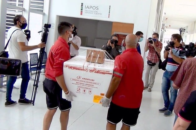 Cerca de las 9.30 de este lunes y con un gran despliegue de fuerzas de seguridad, la vacuna rusa Sputnik V contra el coronavirus, llegó al Hospital "Alejandro Gutiérrez" de Venado Tuerto. Las primeras 500 dosis (componente 1), que arribaron a la ciudad a bordo de un furgón de la empresa Andreani, van a ser colocadas desde este martes 29 de diciembre al personal conocido como "esencial".