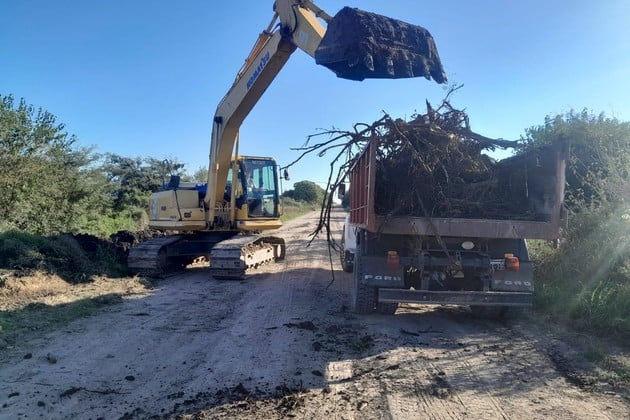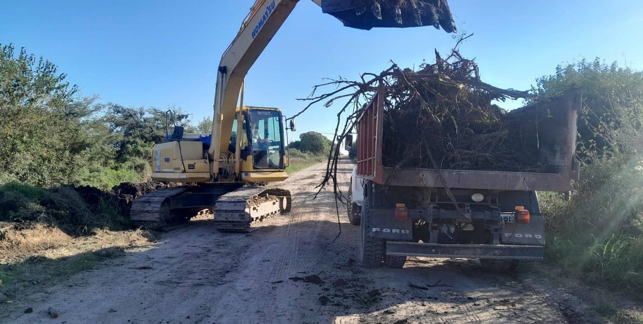 Las intervenciones buscan restablecer la transitabilidad y mejorar el escurrimiento hídrico en un corredor clave para la producción y la vida rural.