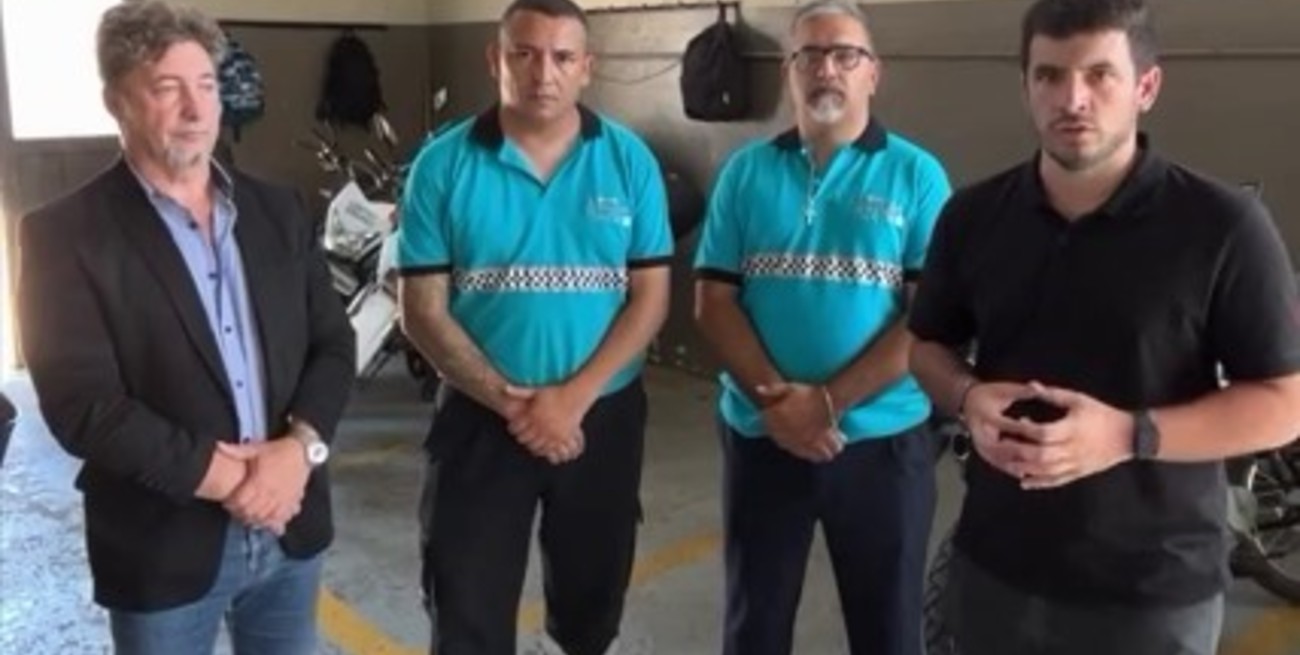 En el mismo, se lo puede ver junto con el director de Control Urbano, Fernando Salinas, y los dos trabajadores que fueron atropellados el domingo por un motociclista cuando intentaron detenerlo para realizar sus controles operativos intensivos que vienen llevando a cabo en el último tiempo.