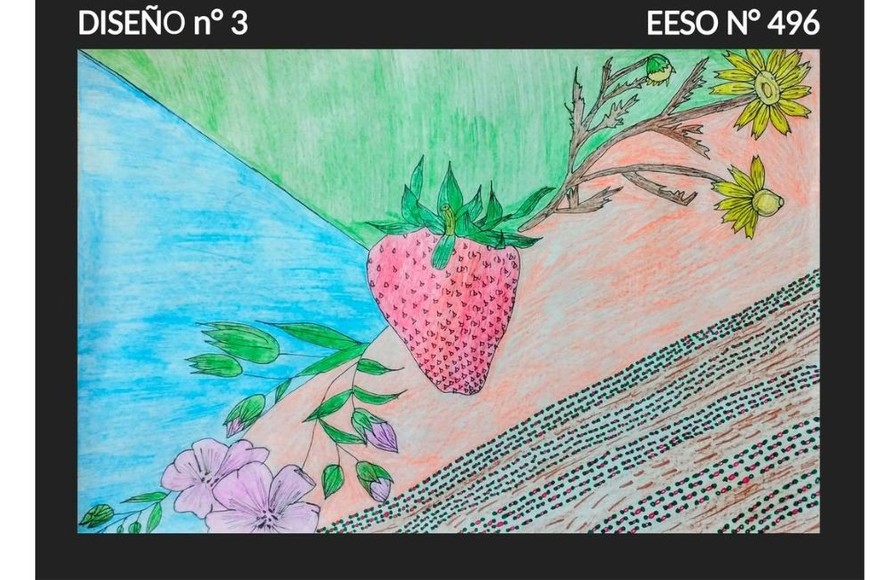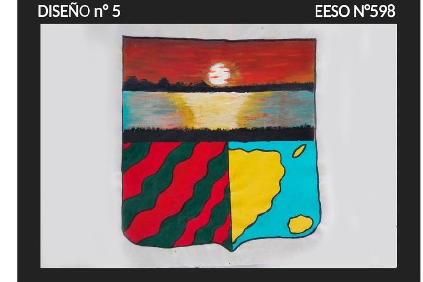 Finalmente, en cuanto a los diseños dados a conocer, la Escuela Secundaria Orientada Nro. 598 “Juana Azurduy” mostró que «en la parte superior representamos un atardecer en la costa, lugar de nuestra querida flora y fauna. En el fragmento inferior izquierdo destacamos el Agro, utilizando una imagen abstracta con colores complementarios (rojo y verde), el color verde de las quintas con sus cintas rojas de frutillas propias de nuestra identidad».