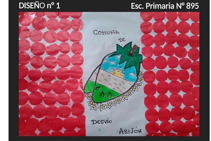 Son cinco las instituciones educativas que enviaron sus propuestas: la Escuela Primaria Nro. 895 “Francisco Candioti” de Barrio Caima lanzó un diseño con bandera roja, blanca y roja vertical y un escudo central con forma de frutilla donde se hace referencia al río, al paisaje y a los trabajadores frutilleros.