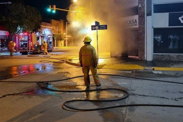 Pasada la medianoche de este martes, se desató un incendio de grandes magnitudes en local comercial ubicado en calle España y Buenos Aires de Casilda. Al arribo de las primeras dotaciones, había gran presión de humo y temperatura en el interior del inmueble. Asimismo, se procedió a la apertura de una de las puertas para comenzar con la extinción. Se hizo remoción y enfriamiento constantemente. “Cuando nosotros llegamos había mucho humo en el interior del comercio. El incendio se originó en una de las oficinas, en ese sector las pérdidas fueron totales. Se nos dificultó mucho poder ventilar el ambiente, ya que no había aberturas al exterior”, expresó Ezequiel Pellegrino, Suboficial principal, en diálogo con El Litoral.