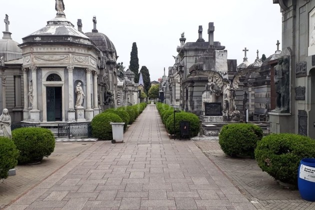 Es martes por la mañana y aunque sea el Día de los Muertos, parece un día común y corriente. Son pocos los autos estacionados en la puerta y el cementerio luce igual que siempre. Dos personas de la Municipalidad se dedican a limpiar el área de la entrada, mientras un cura lava la pequeña iglesia que se encuentra a la derecha de la entrada principal. Allí hay misa a las 9 y a las 11. La segunda, con la presencia del arzobispo local, Eduardo Eliseo Martín. Es por eso que todo debe lucir limpio en el templo. El guardia de seguridad cumple con su horario de trabajo como de costumbre. Y la oficina de El Salvador permanece abierta para consultas.