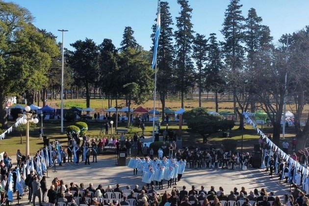 El acto central se realizó en el Parque Municipal General Belgrano. Chiarella presidió la ceremonia, que puso en valor la figura del prócer como símbolo de libertad, educación y futuro.