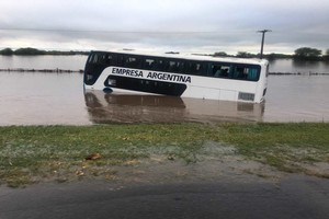 Los bomberos asistieron a pasajeros de colectivos que quedaron varados por el agua acumulada en el camino. Mirá las fotos.