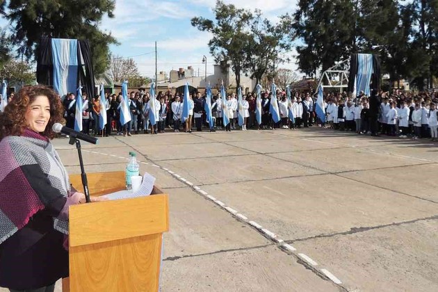 Llegado el momento culminante de la ceremonia, la intendente Mitre expresó que “una Nación tiene identidad cuando se construye fundada en principios y valores que le son propios e intransferibles”.