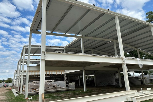 Por su parte, el secretario de Obras Públicas, Marcelo Pascualón, explicó que “hoy vemos un avance del 45% de los trabajos ejecutados, con la cubierta colocada compuesta por paneles conformados con aislación térmica incluida y que continúa por estás semanas con la realización de mamposterías, pisos allanados de hormigón y el tendido de troncales de instalación sanitaria y pluvial".