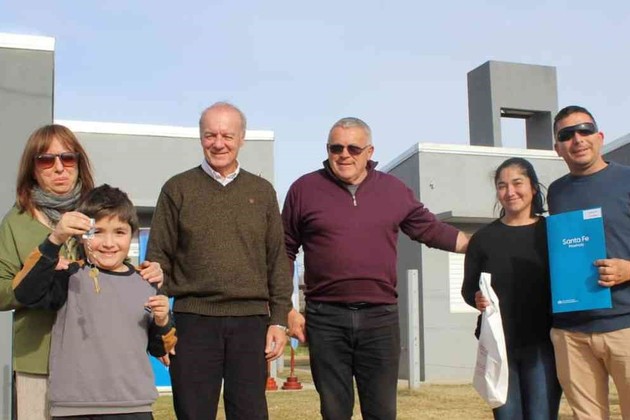 Además, durante la jornada se entregó una vivienda en la localidad de El Trébol, a través del programa Lote Propio, y cuatro escrituras a familias de Carlos Pellegrini.