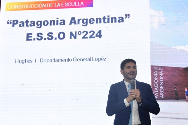 Acompañado de Lisandro Enrico presentaron el proyecto de obra para la construcción del edificio de la Escuela de Educación Secundaria Orientada N° 224 “Patagonia Argentina”.