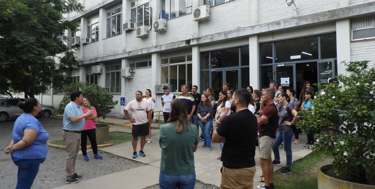 Paso seguido, el numeroso contingente de familiares de los nuevos estudiantes, fueron divididos en dos grupos para realizar una visita guiada por los distintos pabellones, laboratorios, departamentos, aulas y dependencias de la Facultad. El acompañamiento del recorrido estuvo a cargo del Dr. Gustavo Ribero (Secretario de Coordinación Institucional) y el Dr. Julio Ramos (Secretario Académico) quienes brindaron explicaciones amenas y didácticas acerca de las diferentes líneas de investigación y áreas de especialización con que cuenta la Facultad, el funcionamiento del ICiAgro Litoral, las empresas incubadas y los convenios de cooperación, entre otras aristas de la vida académica e institucional de la FCA.