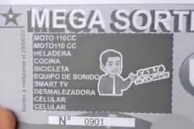 En la escena siguiente, Villa, que es el actual presidente del Concejo Municipal florentino, se corre del foco para dar centralidad a los elementos que componen la lista de denominado “Megasorteo”. “¡Miren lo que tenemos acá! Dos motos, una bici, un equipo de sonido, una heladera, una cocina, una tele, una motoguadaña... ¡Ah! Y dos celulares”, enumera, en tono festivo.