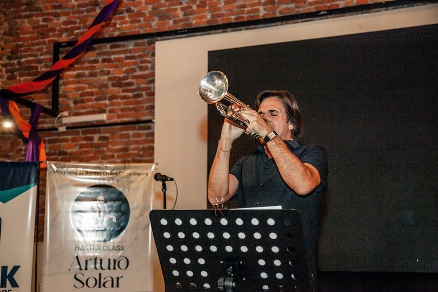 El director de orquesta, compositor y trompetista Arturo Solar en la previa del final de la Gira de Luis Miguel, disertó para el programa educativo con terminalidad artística con sede en Franck, Pilar y Felicia invitado por el director Julián Ovando Salemi.